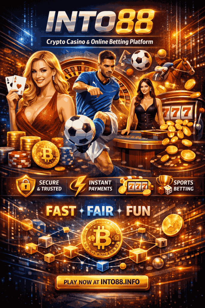 INTO88 is a crypto-friendly online casino and betting platform offering a wide range of casino games and sportsbook markets. The platform is designed to support fast deposits and withdrawals using digital currencies, while maintaining a smooth interface that appeals to both new and experienced players.